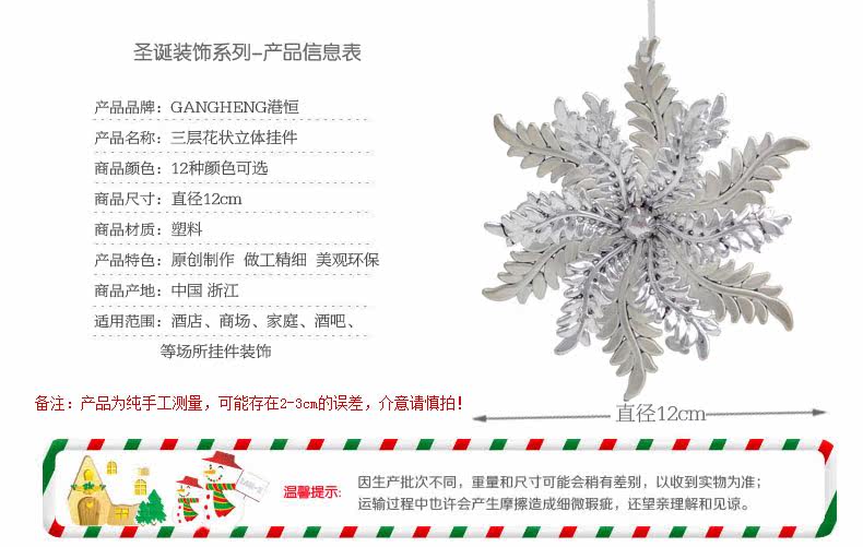 [Name] Hong Kong Heng Christmas decorations 12cm three-dimensional shaped Feng Wei spiral snowflake pendant High-grade light snow 35g