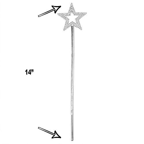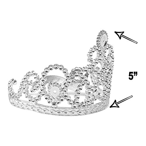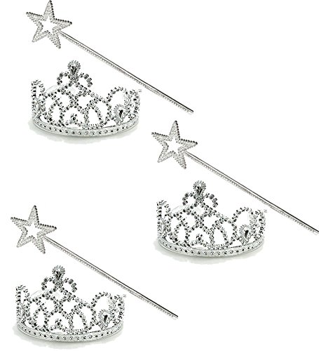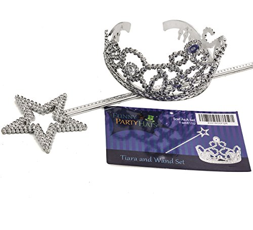 One size fits all, durable plastic tiara crown and wand feature jeweled studs for a magical pretend play activity. Great for children of all ages.