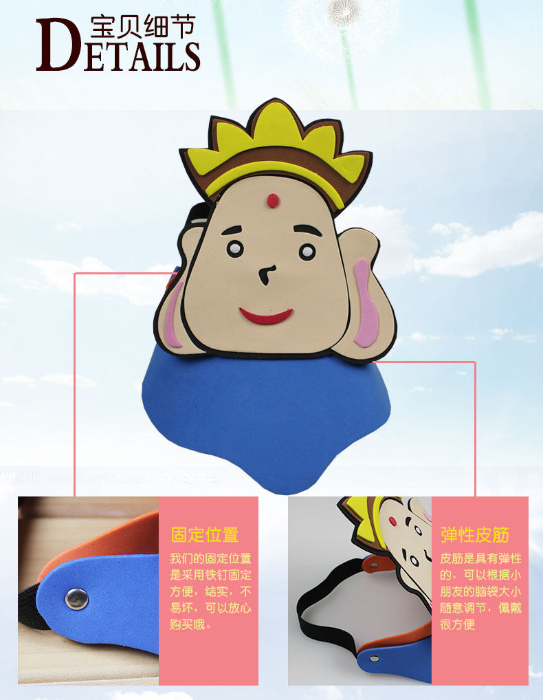 Brand: Lin FangItem name: EVA hatWeight: about 20 gramsSize: all, behind the elastic band, both adults and children can useMaterial: EVA foam (sponge paper)Color: if the picture is taken in kind