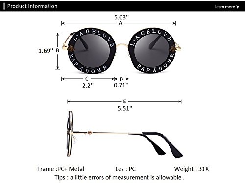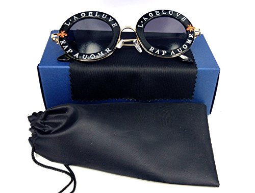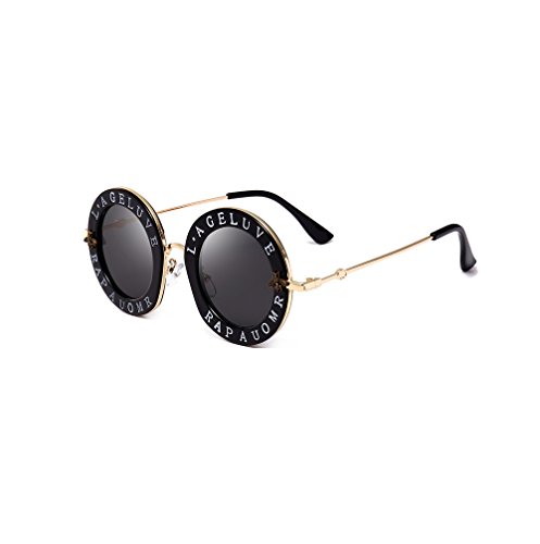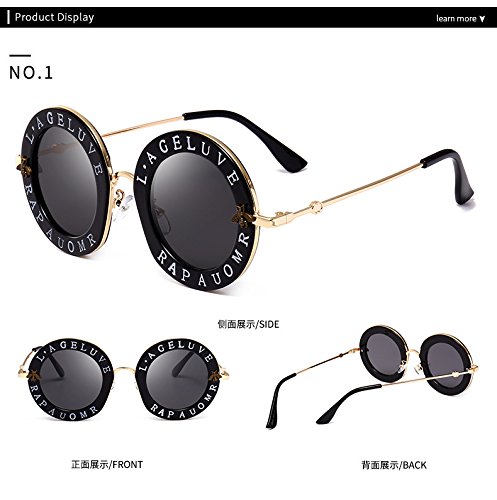 Casual Fashion Eyewear Women Vintage Bee Lettering Round Circle Frame Sunglasses
