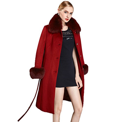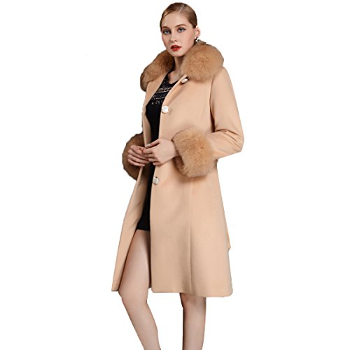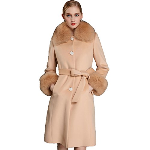 (She in Silk)/Women/Outerwear/DIRECT FROM USA/Sheinsilk High Grade 95% Real Wool Long Women Coat Mink Fur Collar