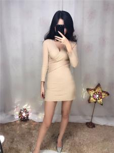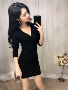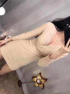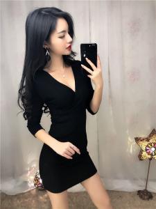 ミニ丈ワンピース タイトワンピース Vネック ニット フィット 長袖 プチプラセール 秋冬 セクシー
