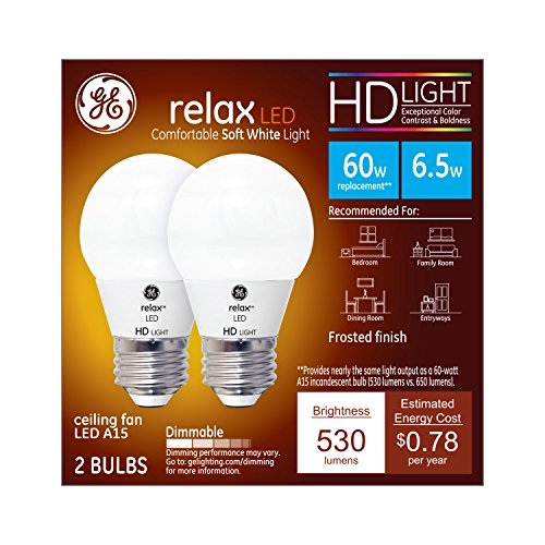 Studio : GE Lighting Publisher : GE Lighting Binding : Tools Home Improvement Product Description GE high definition bulbs are an improved, energy-saving LED that enhance the appearance of colors. Experience the difference with bolder colors and enhanced contrast vs. Standard GE LED bulbs. Relax™ HD light offers a warm, soft white light perfect for comfortable moments and cozy spaces. Use relax™ HD light in spaces like bedrooms, family rooms and dining rooms. Install this a15 light bulb in ceiling fans, small table lamps and open fixtures. There’s no filament inside the LED bulb, so it resists vibration better than a standard light bulb. 0