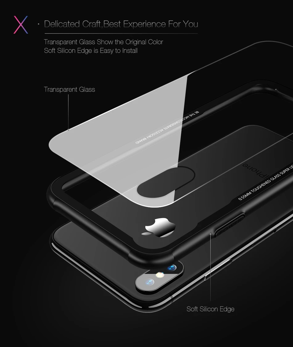 Feature One:9H Hard Tempered Glass Back + Soft Silicone Edge Cover Cases Capa