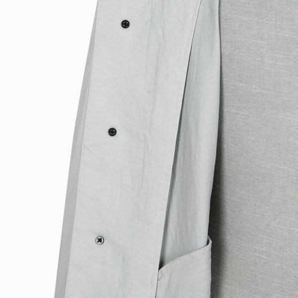 첫 버튼을 제외한 나머지 단추를 히든버튼 처리하여 포인트를 주었습니다.면과 폴리우레탄 혼용 원단을 사용하여 신축성이 좋으며, 하단 뒷트임이 있어서 활동성이 좋습니다 ^^은은한 라이트 그레이 컬러로 어느 옷에나 연출이 가능하며, 유행을 타지 않는 색상이라서 오래 두고 입으실 수 있는 아이템 입니다 *^^*