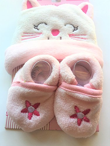 Binding : Apparel Product Description ?Baby Girls set is White with Light Rose color, and has Cat designs. ?Set Package size: 12" x 8" x 2.5". ?Give the gift of warmth. Perfect gift for new babies, the soft material of this gift set make it a 100% Polyester. The good thing about polyester are strong crisp, soft hand resistant to stretching and shrinkage, washable or dry-, soft hands cleanable, quick drying, resilient, wrinkle. ?Great gift for Newborns, Baby shower, Cold Protection affordable and cute. This Gift Set Includes 0 - 6 Months Cap and Booties Set. 0