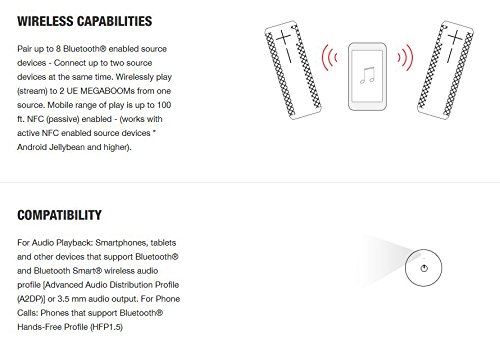 Freakishly amazing 360-degree sound with deep bass.For Audio Playback: Smartphones, tablets and other devices that support Bluetooth® and Bluetooth Smart® wireless audio profile [Advanced Audio Distribution Profile (A2DP)] or 3.5 mm audio output.