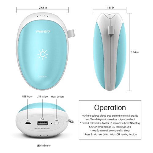/Rechargeable and Reusable: The hand warmer is with high capacity 7500mAh lithium battery, whichcan heat up for 5 hours after fully charged.