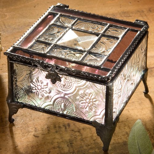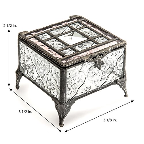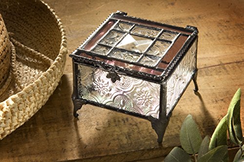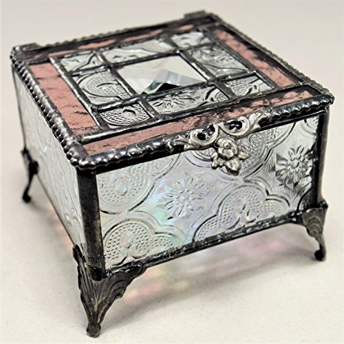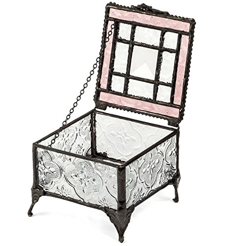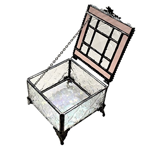 J Devlin Glass Art Box 354-2 Pink Rose Tiffany Glass Jewelry Box Keepsake Gift for Mom Square Decorative Box