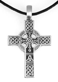 -. Title : Pewter Celtic Cross with Triquetra Knot Design Pendant, Leather Necklace