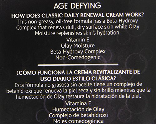 This non-greasy, oil-free formula has a Beta-Hydroxy Complex that renews dull, dry surface skin while Olay Moisture replenishes skins hydration. Vitamin E Olay Moisture Beta-Hydroxy Complex Non-Comedogenic.Feature
