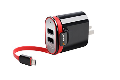 Dison Folding Dual-port USB Adapter Wall Charger AC Charging Plug with Built-in Micro Cable