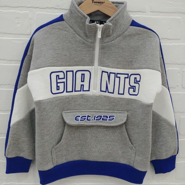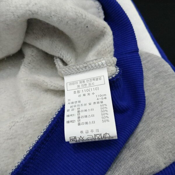 앞 레터링 나염과 뒤 팀마크 나염이 포인트인 반목 컬러 블록 맨투맨, 반오픈형 스타일로 착용이편함.
