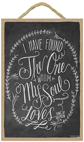 (SJT14849) I have found the one whom my soul loves (Song of Solomon 3:4) 7" x 10.5" Wood Plaque Sign featuring the chalk artwork of Lily & Val