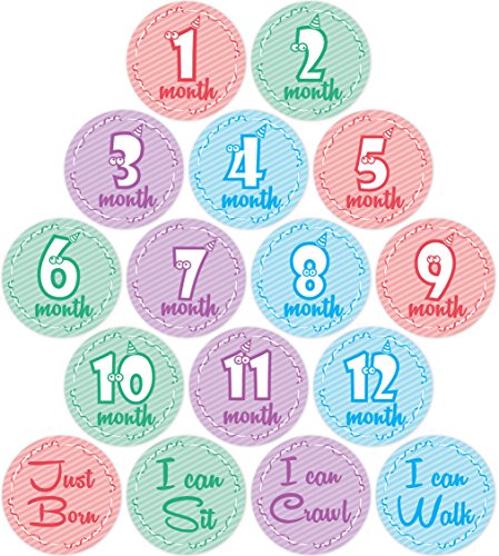 Monthly Baby Stickers – 16 Pack of Baby Milestone Stickers for Boys and Girls | Great Shower Gift, Stylish for Baby Photo Props