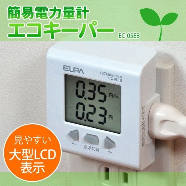 | 接続した電気機器の使用時間、積算電気料金、1時間あたりの電気料金、瞬時電力量、積算電力量、CO2排出量を測定できます。電気料金単価を99.99まで自由に設定でき、表示切替ボタンを押すと表示項目が順番に切替わります。見やすい大型LCD表示! |