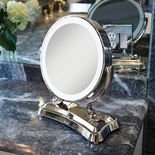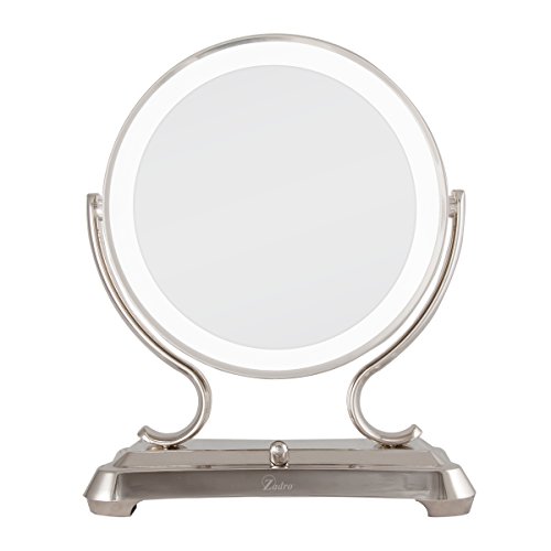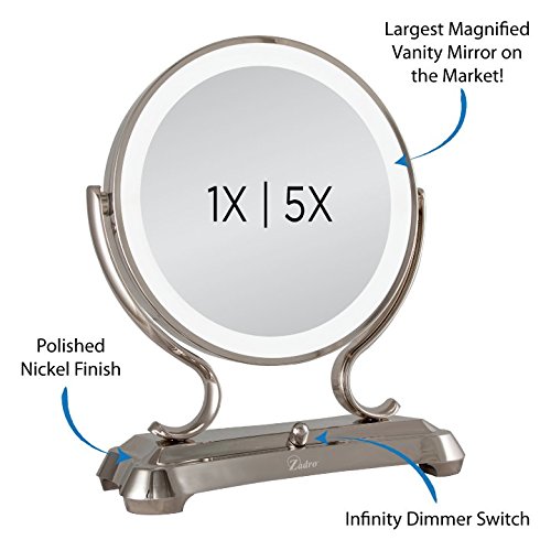Zadro Polished Nickel Surround Light Dual Sided Glamour Vanity Mirror, 5X / 1X Magnification