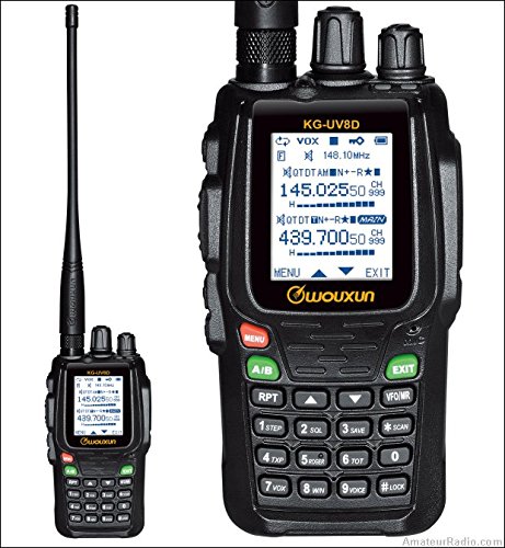-. Binding : Sports -. Brand : Wouxun -. Color : Black -. EAN : 0095225144196 -. Feature : Bright flashlight illumination function Meets IP55 waterproof rating English female voice prompts enable non-sighted operation (can be turned off) 999 channels memories (shared) VOX Function Digital FM radio (76-108MHz) with automatic tuning and storing, radio frequency display, 18 FM memories in 2 banks Power on display: show battery voltage or color logo Windows PC programmable, free software available for download. Optional low cost cable (SKU: WXUSB) required. / Radio to radio cloning with optional cable (SKU: WXCLN) Same channel: VHF TX & UHF RX or UHF TX & VHF RX available 105 groups DCS/50 groups CTCSS 16-Key DTMF encoding CTCSS encode/decode (with split tone capability) Stopwatch function SOS function Low-voltage voice prompt / Busy channel lockout Selectable transmit over timer (from 15 to 600 seconds) Selectable step sizes of 5, 6.25, 10, 12.5, 25 kHz / Multiple scan modes including priority scan Keypad lock (auto or manual) Programmable by computer or keypad High contrast white backlit keypad. All keys are backlit (except A/B, S/D & RPT) / Large backlit color LCD display True simultaneous dual receive (V+V, U+U, V+U) 999 memory channels Built-in cross band repeat feature Recieve frequency range: VHF: 136-174 MHz, UHF: 400-480 MHz Standard SMA antenna connector New heavy duty belt clip FCC Part 97 Approved 8-Character Alpha-Numeric, Backlit Color LCD Display Selectable high/low power settings (VHF: 5W high/1W low) (UHF: 4W high/1W low) Includes extended life 2600 mAh high capacity li-ion battery as standard Includes intelligent desktop 3-4 hour rapid charger Loud speaker audio output (500 mW) -. Label : Wouxun -. Manufacturer : Wouxun -. ProductGroup : Sports -. ProductTypeName : SPORTING_GOODS -. Publisher : Wouxun -. Studio : Wouxun -. Title : Wouxun KG-UV8D Dual-Band 134-174/400-480 MHz Cross-band Repeat Two Way Radio with 2600mAh Battery -. UPC : 095225144196