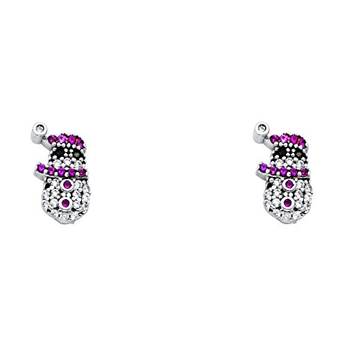 -. Title : Sterling Silver Rhodium Plated CZ Snowman Stud Earrings with Screw Back