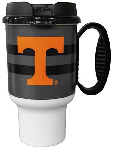 GAMEDAY NOVELTY NCAA TENNESSEE VOLUNTEERS STRIPED INSULATED TRAVEL MUG WITH NO SPILL FLIP LID & HANDLE, 20 OZ