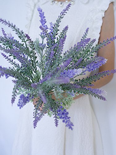 Artemiz Artificial Flowers Fake Plants for Wedding Bouquet - Flocked Snowy Lavender Arrangements Purple Lifelike Home Garden Wedding Party Décor DIY Floral Bunch[Purple]