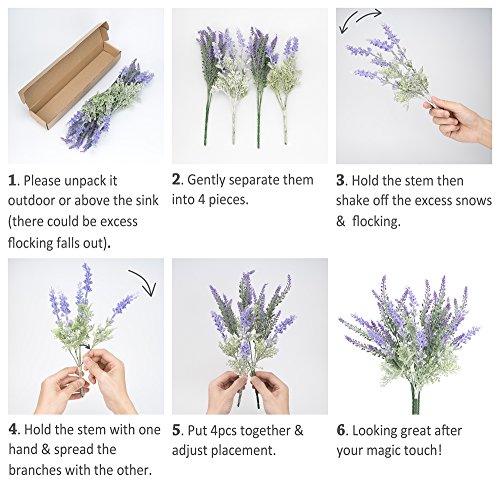 Each pack has 4 bundles. Includes: 2pcs snowy lavenders (Lavandula multifida) & 2pcs flocked garden lavenders (Lavandula angustifolia)