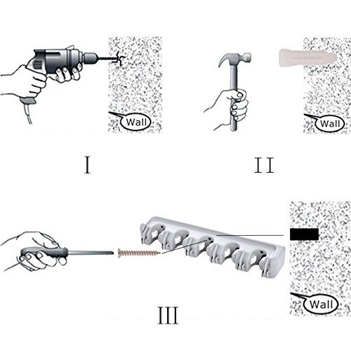 - 【Easy To Install And Use:】 There are 6 screws and 6 anchors in the package to hold the wall mount organizer. Simply by lifting the handle, the rolling balls automatically adjust to each handle's thickness and grip it securely. So there is no worry that the tools will drop to the floor. Hooks can be folded up and out of the way.