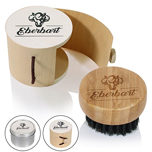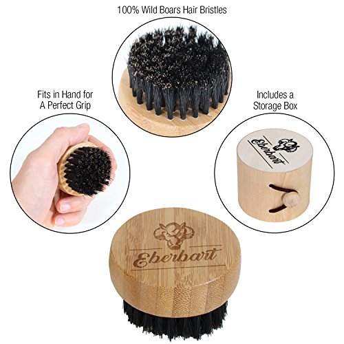 Wild Boar's Hair Beard Brush (Wooden Box) - Includes Free ebook, Round and Travel Size Includes Care Case, Comb Made of Wild Boar Bristles and Solid Wood Bamboo Top by Eberbart