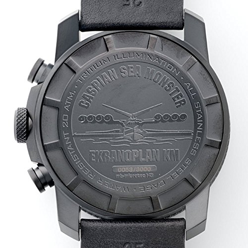 ケース素材:ステンレススティール(ブラックPVD), スクリューダウンケースバック(エクラノプランKMのイラスト刻印・シリアルナンバー刻印入り)