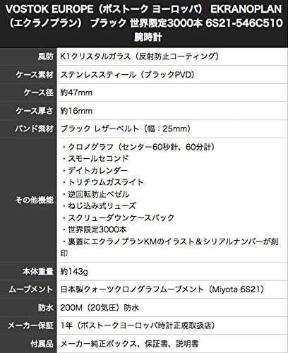 メーカー保証:1年(ボストークヨーロッパ時計正規取扱店)