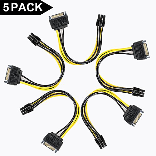 Studio : JD Tech Publisher : JD Tech Binding : Electronics Product Description Why Choose JD Tech? 1. The JD Tech means high-quality products for reasonable prices. Our cases are stylishly designed and produced with care to ensure an exact fit for the daily functionality of your device. 2. We boast excellent customer service with a high satisfaction rating, with our team of representatives ready to assist you Monday to Friday, from 9:30AM to 5:30PM Pacific Time. 3. We pack and ship your orders directly from our US-based warehouse within 24 business hours, and tracking information will be provided to you as soon as it's available. Description [5 Pack] JD SATA Power 15 Pin to 6 Pin PCI Express Graphics Video Card Power Cable Adapter (8 Inch) Specification [Application] SATA 15 pin to 6 pin Cable adapter lets you use your SATA power cable to power your video card inside your computer. It is perfect if you don't have enough PCI-E power connectors to run your video card. [Ideal Length] 8 inch (20cm) length connector, the SATA power cable is perfect for internal cable management. [Secure Connection] Connecting a SATA power extension cable can decrease the risk of damaging internal connectors that are difficult to reach and unplug, and also reduce the strain on the connectors of SATA drives or a computer motherboard. [High Compatibility] Eliminates the need to upgrade your existing SATA power supply in order to use a PCI Express video card. Materials Copper Wire Warranty JD warranty: 1 month hassle free return and 1 year limited warranty (free replacement shipping fee not included)