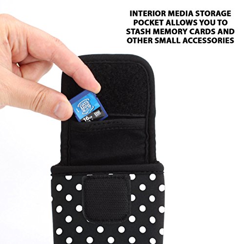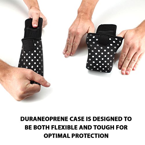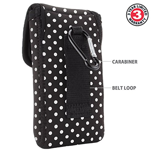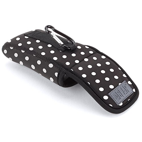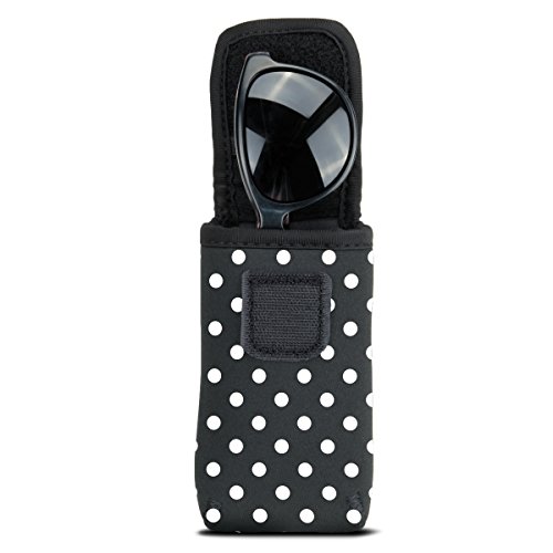 USA Gear Soft Neoprene Sunglasses and Eyeglasses Case - Polka Dot. Constant Defense - The FlexArmor series features high-density Neoprene material designed to comfortably store and protect your glasses. The flexible fabric fits like a glove , snugly conforming to your glasses shape for that perfect fit. The material helps absorb shock from dings and bumps , while also withstanding the abuse from daily wear-and-tear. The case has a scratch-resistant inner lining to help keep your glasses looking pristine and scratch free. Each case combines the durable Neoprene with heavy-duty stitching to ensure long-lasting protection for your most precious accessories. Easy to Use and Convenient - Simply stretch the sides of the case over your sunglasses and the form-fitting Neoprene will take care of the rest. The flap-style fold on top makes it easy to access your device while also keeping it secure when not in use. The case comes with an interior storage pocket for holding small accessories like a cleaning cloth. It is also equipped with a built-in belt loop and carabineer , making it very easy to carry while on the go. Case Dimensions: 5" x 2.5" x 1". Works with most Sunglasses and Eyeglasses Brands!Feature