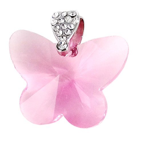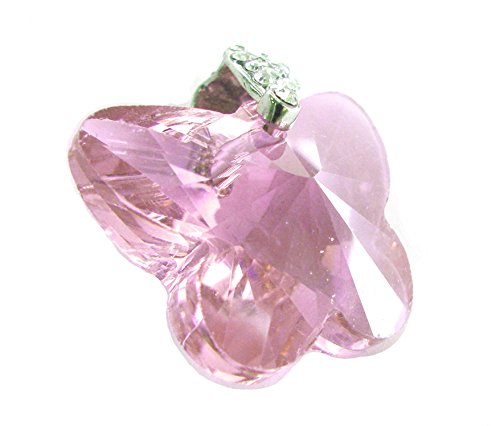 Linpeng 100518-12 Faceted Butterfly Shaped Faceted Crystal Pendant, 28mm, Pink