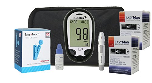 -. Title : EasyMax Diabetes Testing Kit- EasyMax V Talking Meter, 100 EasyMax Test Strips, 100 30g EasyTouch Lancets, 1 Lancing Device and EasyMax Control Solution