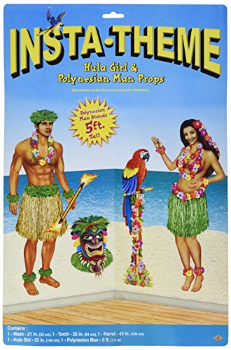 Beistle 52004 Printed Hula Girl and Polynesian Guy Props, 21" to 5', 5 Pieces In Package