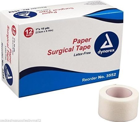 -. Title : Paper Surgical Tape Tears easily Latex Free 1" x 10 Yards 12 Rolls Per Case by Dynarex MS15365