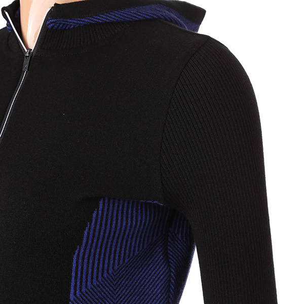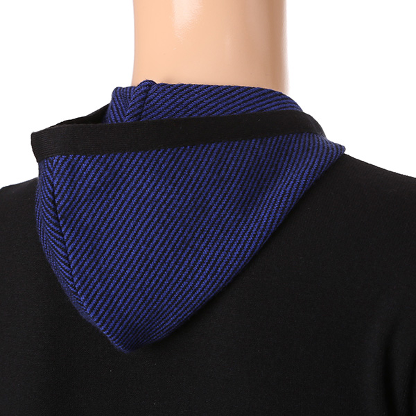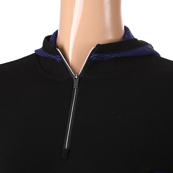 - 변형 조직 블러킹과 소매 배색 포인트를 준 미니후드 스타일 HALF ZIP 스웨터