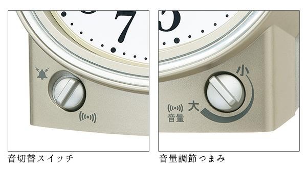 アラーム音(ベル音・電子音)が選べる目ざまし時計です。音量調節機能つき(電子音のみ)。 |