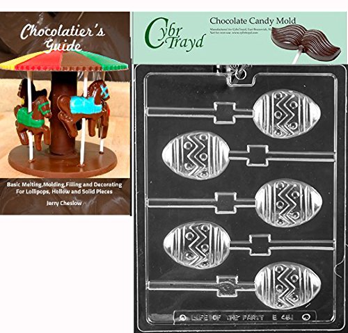 CybrTrayd Zigzag Egg Lolly Chocolate Candy Mold with Chocolatier's Guide Instructions Manual, Clear