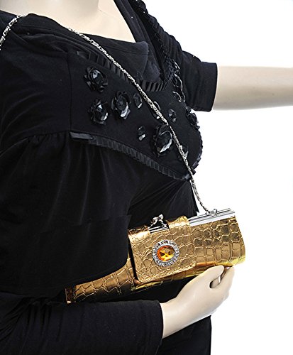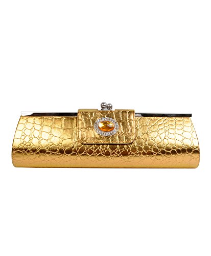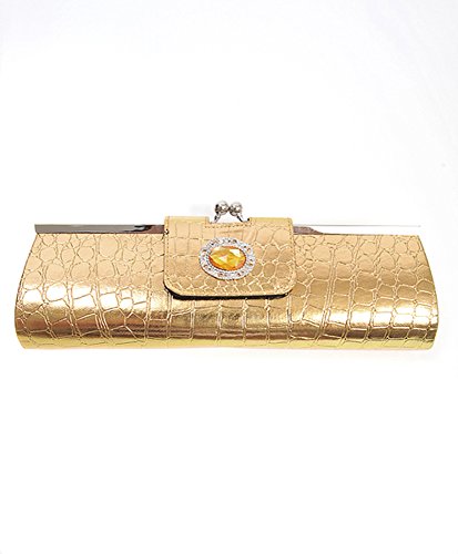 BG Long Faux Crocodile Multi color Evening Bag , Gold