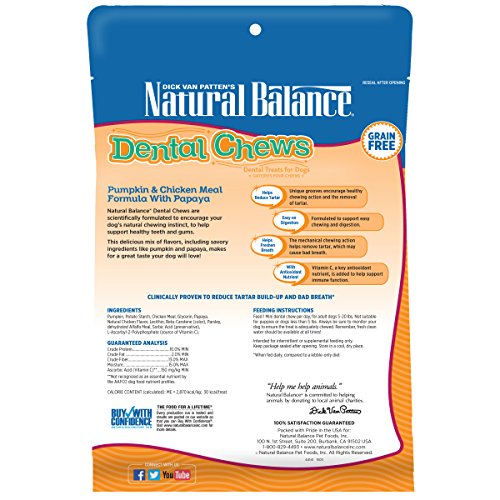 Natural Balance Dental Chews Pumpkin & Chicken Meal Formula with Papaya, Small Dog Treats, 13-Ounce