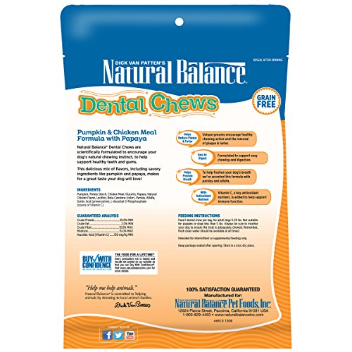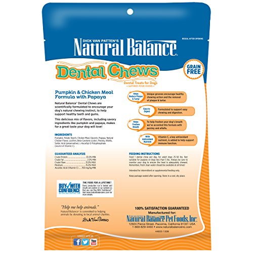 Natural Balance Dental Chews Pumpkin & Chicken Meal Formula with Papaya, Mini Dog Treats, 12.5-Ounce