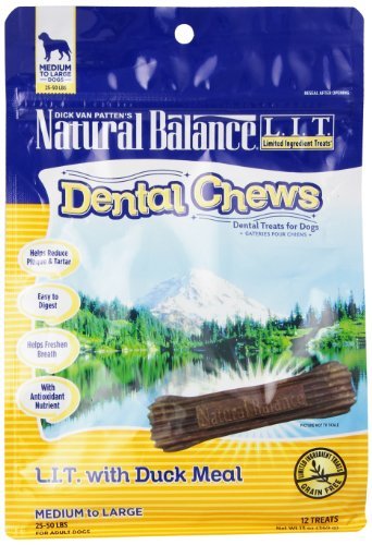 Natural Balance Dental Chews L.I.T. Limited Ingredient Treats Duck Meal Formula, Medium Dog Treats, 13-Ounce