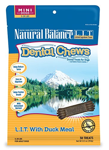 Natural Balance Dental Chews L.I.T. Limited Ingredient Treats Duck Meal Formula, Mini Dog Treats, 12.5-Ounce