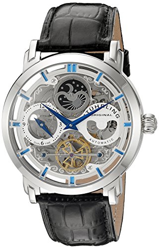 -. Binding : Watch -. Brand : Stuhrling Original -. Color : Black/Silver -. Department : mens -. EAN : 0847988043120 -. Feature : Stainless steel round case on a black genuine leather strap / Silver skeleton dial with am pm indicator and blue stick style markers / Automatic-self-wind Movement / Case Diameter: 47mm / Water Resistant To 165 Feet -. Label : Stuhrling Original -. Manufacturer : Stuhrling Original -. Model : 371.01 -. MPN : 371.01 -. PackageQuantity : 1 -. PartNumber : 371.01 -. ProductGroup : Watch -. ProductTypeName : WATCH -. Publisher : Stuhrling Original -. Studio : Stuhrling Original -. Title : Stuhrling Original Men's 371.01 Legacy Automatic Self Wind Black Genuine Leather Strap Watch -. UPC : 847988043120