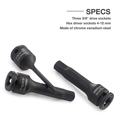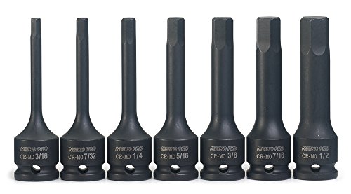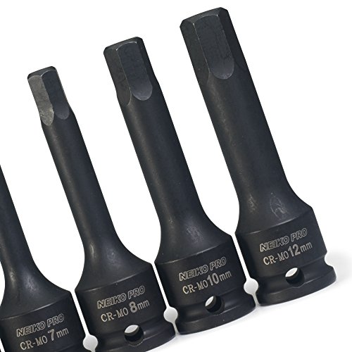 Neiko 01130B 3/8-Inch Drive Cr-Mo Metric Allen Hex Driver Impact Socket Set, 4 mm - 12 mm | 7-Piece Set