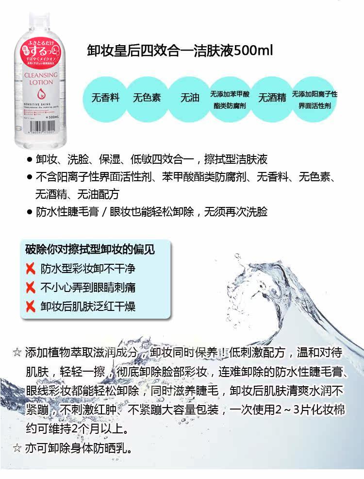 一、四效合一:卸妆、洗脸、保湿、低敏(擦拭型)
