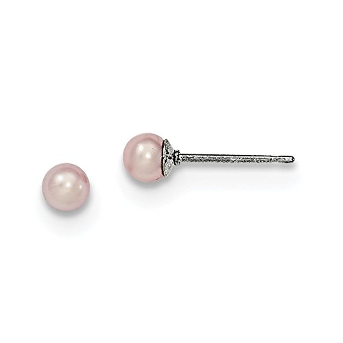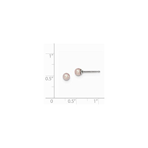 Solid 925 Sterling Silver 5-6mm Purple FW Cultured Round Simulated Pearl Stud Earrings