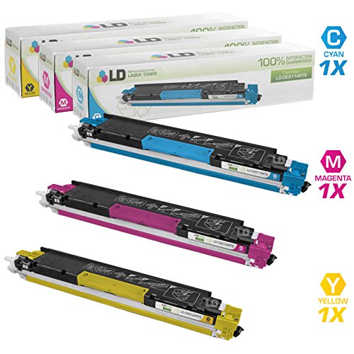 LD © Remanufactured Replacements for Hewlett Packard 126A 3PK Toner Cartridges:1 CE311A Cyan, 1 CE313A Magenta, & 1 CE312A Yellow for use in HP Color LaserJet Printers