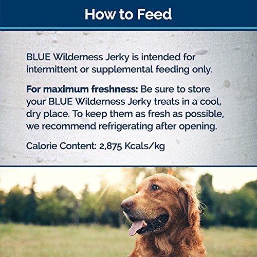 -. Binding : Misc. -. Brand : Blue Buffalo -. Feature : Made in the USA / All Natural / For dogs of all sizes / Perfect for dogs on grain-free or raw diets / Contains no chicken or poultry by-products -. Label : Blue Buffalo -. Manufacturer : Blue Buffalo -. PackageQuantity : 1 -. ProductGroup : Pet Products -. ProductTypeName : PET_SUPPLIES -. Publisher : Blue Buffalo -. Studio : Blue Buffalo -. Title : BLUE Wilderness Trail Treats Grain-Free Jerky Dog Treats